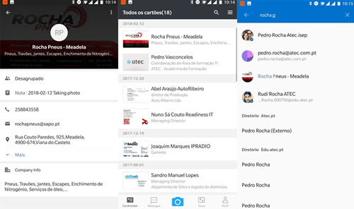 Todavia é a melhor app para o efeito até á data deste artigo (12/02/2018). Esta é muito eficiente a fazer a gestão dos seus cartões de visita e com um sincronismo perfeito para poder utiliza-los em qualquer dispositivo.