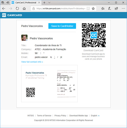 - Permite adicionar automaticamente os cartões aos contatos do telemóvel, WhatsApp, Gmail, Duo, Outlook (Exchange), LinkedIn, etc.