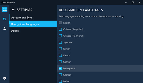 - Permite digitalizar os cartões através da camara do telemóvel.
