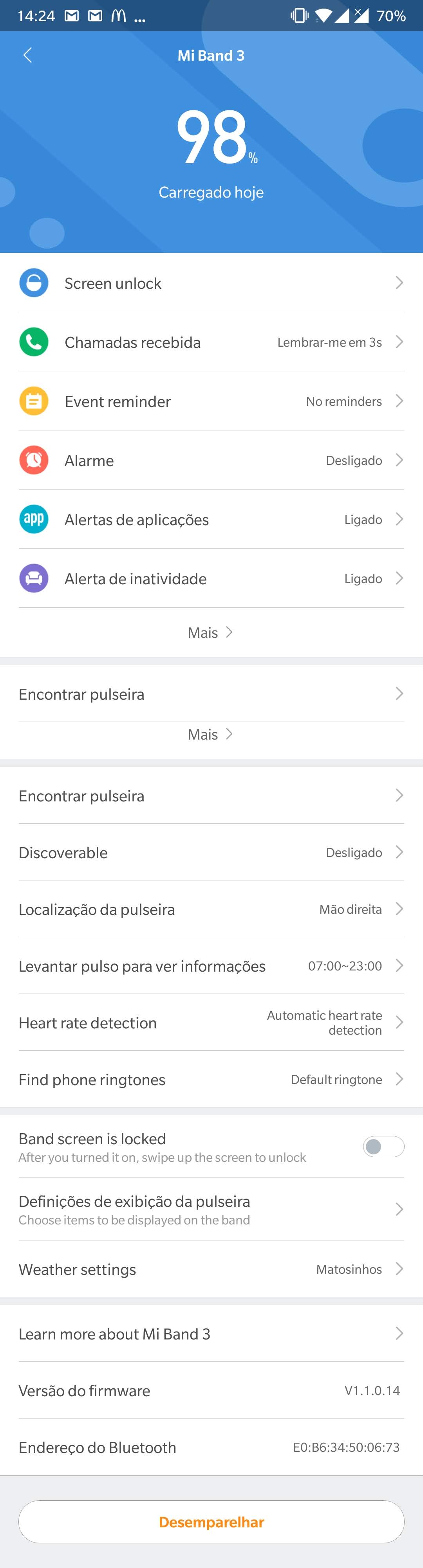 - Desemparelhe a Mi Band 3, tal como fez no passo 1