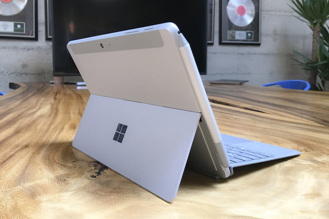 Traz um processador da intel, o Intel® Pentium® Gold 4415Y, com uma performance bastante aceitável, o peso é muito interessante, de apenas 522g (sem o teclado), passando a ser o Surface mais leve até à data (o Surface RT, que era o mais leve de toda a família, pesava 680g), um ecrã de 10” com uma excelente resolução de 1800×1200 (3:2), com um vidro Corning® Gorilla® Glass 3.